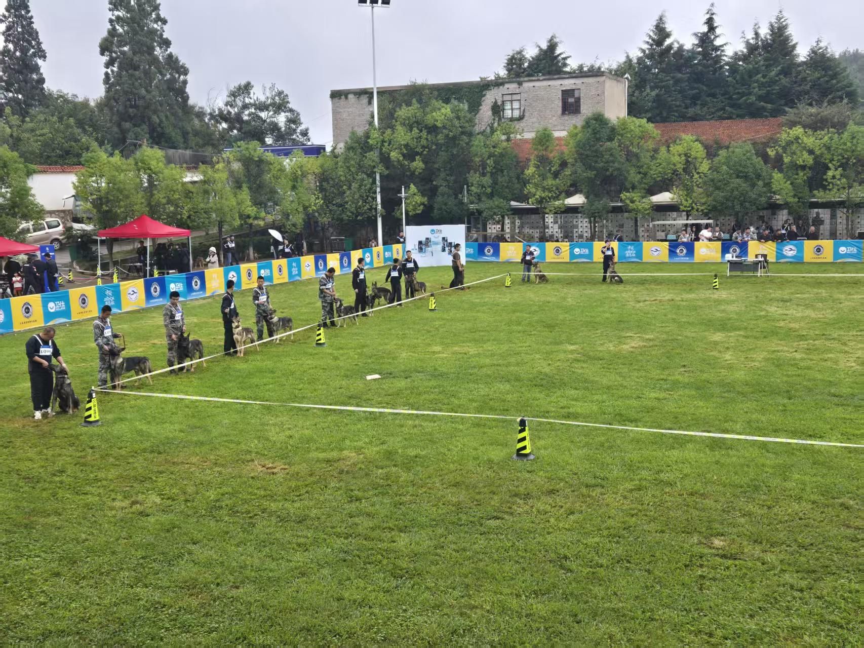 尽管阴雨连绵,训练场地湿滑泥泞,但丝毫没有影响训犬员和警犬的专注。在服从科目展示中,警犬们目光专注,对训犬员的每一个手势、每一句口令都反应迅速、执行精准,跨越障碍时身姿矫健,匍匐前进时动作沉稳,衔取物品时精准无误,即便雨水打湿了毛发,依旧保持着高度的纪律性。选美环节,警犬体态健硕,毛发光亮,从体型步态到气质风貌,每一只警犬都展现出经过严格训练后的优良素养,完美诠释了何为“力量与智慧并存,忠诚与勇敢同在”的警犬风采。整个活动最打动人心之处是在恶劣天气下训犬员和警犬依然高度协同、默契配合的场景,深深触动了在场的每一位观众。