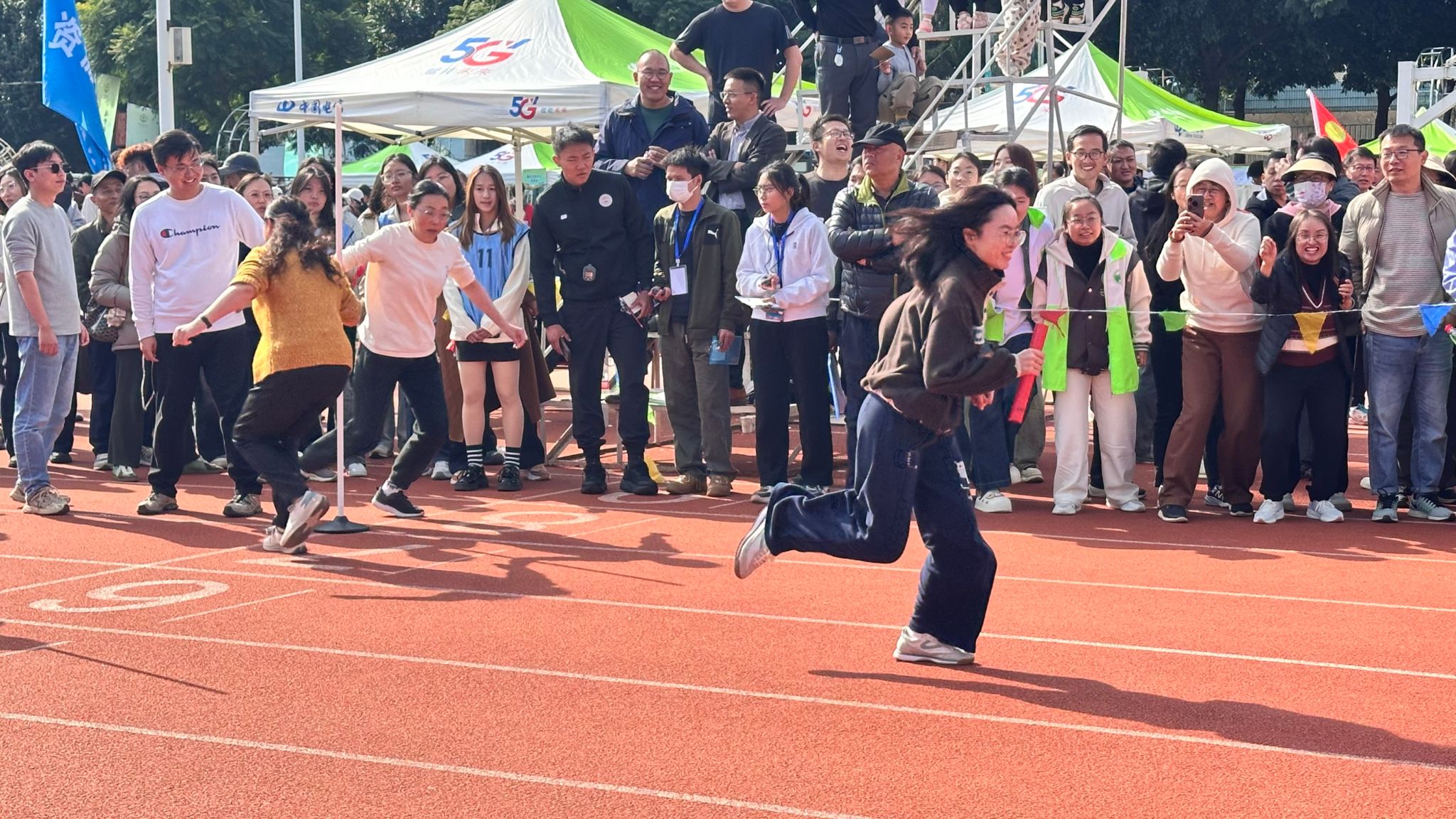 在教职工趣味运动会中,各参赛队伍踊跃投入、配合默契,场上队员全神贯注、奋勇争先,场下观众呐喊助威、掌声不断,现场欢声笑语此起彼伏,气氛热烈欢快。活动既展现了个人风采,更彰显了团队协作精神,赛场上处处洋溢着健康快乐、和谐奋进的运动氛围。
