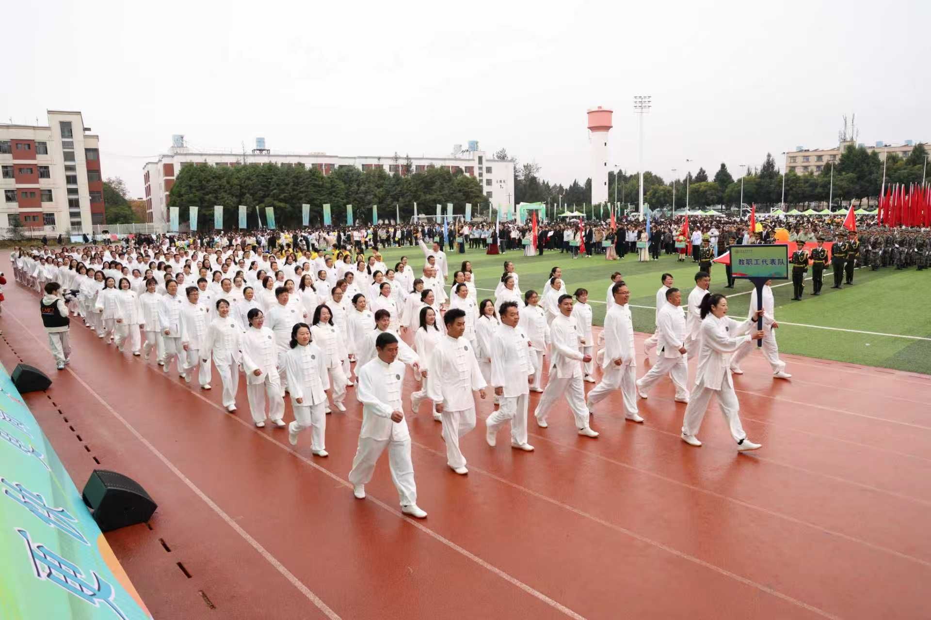 开幕式上,校工会组织的230名教职工方阵身着统一练功服,精神饱满、意气风发参加了入场式,随后进行了八段锦表演,动作行云流水,气势恢宏,充分展现了学校教职工积极向上、团结拼搏的良好精神面貌。